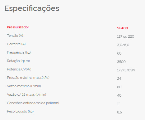 - Pressurizador com sistema misto de pressostato e fluxostato garantindo o funcionamento do equipamento mesmo em baixas vazões.