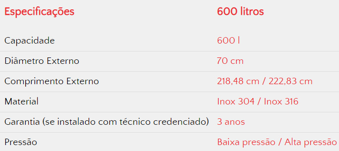 - Possibilidade de personalização de litragem e inclusão de acessórios;