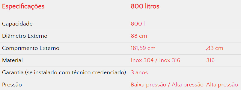 - Possibilidade de personalização de litragem e inclusão de acessórios;