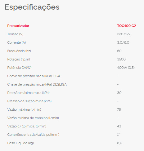 Pressurizador Komeco TQC 400 G2 Bivolt