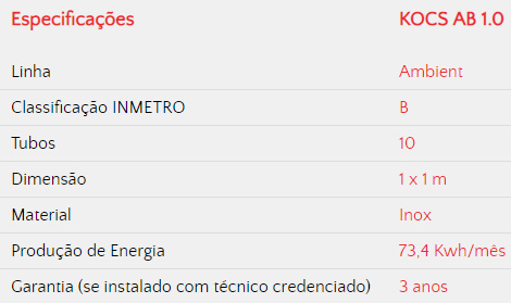 Coletor Solar Komeco Ambient 1,00 x 1,00 m (Inox) 10 Tubos